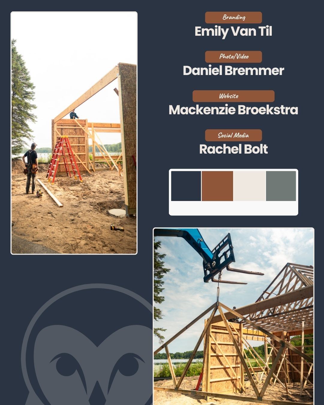 Yes, Emily helped name the business. Through a series of collaborative naming workshops, we landed on Wildwood Barn Builders — a name that evokes craftsmanship, nature, and the strong, simple character Brendan was building into every project.
