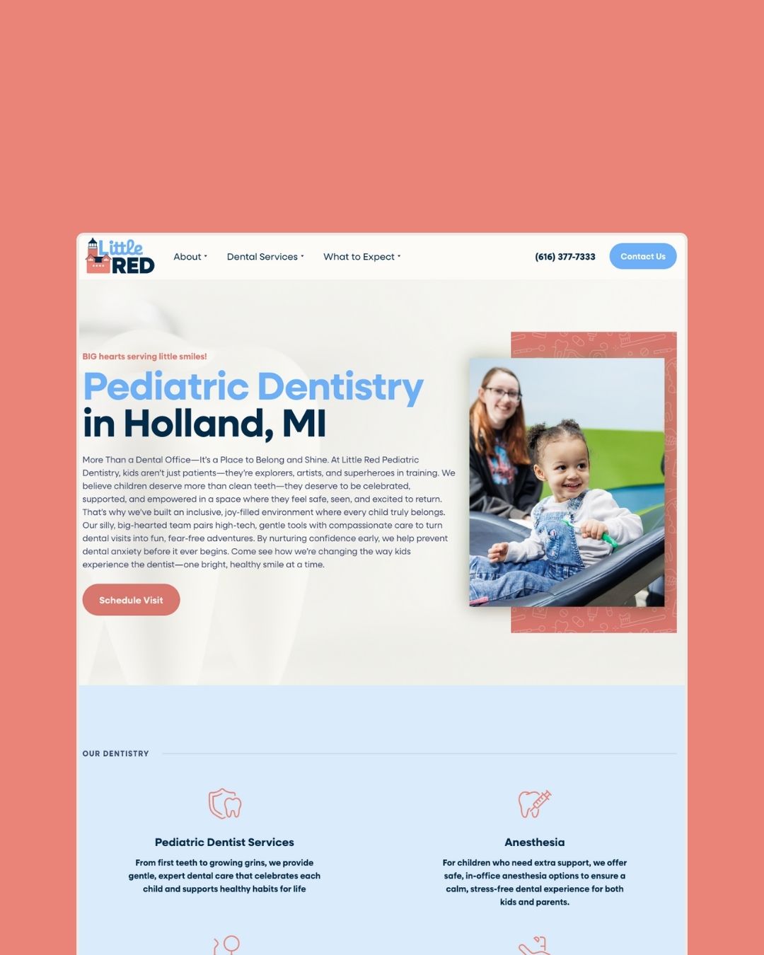 See how Launch Kit helped Little Red Pediatric Dentistry upgrade their website, social media, and content for a professional, search-optimized online presence.