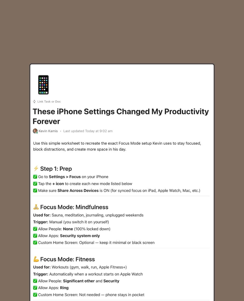 Your phone is constantly pulling your attention away from your work, your ideas, or your clients — this free checklist will help you stop the noise for good.